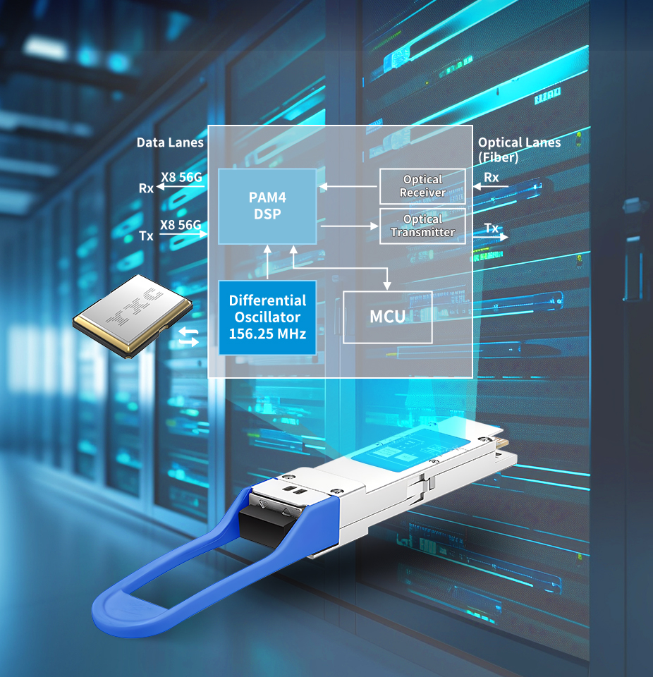 光模塊傳輸速率越來越快,對(duì)于高速光學(xué)模塊,很多廠商都推出了PAM4 DSP解決方案;為滿足光模塊長期穩(wěn)定地高速率傳輸?shù)囊?,需要為DSP提供高精度、高穩(wěn)定性的參考時(shí)鐘,全溫頻偏一般要求在±50ppm以內(nèi);