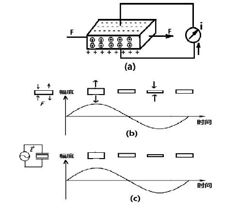 石英晶體的壓電效用圖:(a) 壓電效應(yīng)(b) 正壓電效應(yīng)(c) 逆壓電效應(yīng)