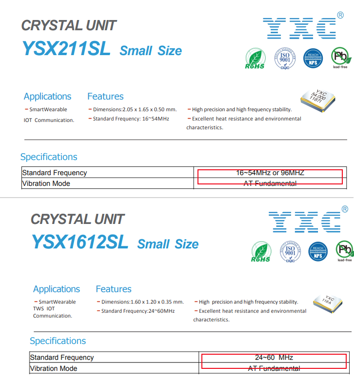 因此物理上石英晶體(指無源諧振器)在2.0x1.6mm封裝中提供不能低于16MHz的頻率或在1.6x1.2mm封裝中不能提供低于24MHz的頻率。在電路設計中,從較大尺寸的石英晶體更換到較小尺寸的石英晶體時需要考慮到這一點。