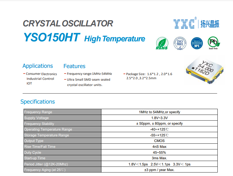 推薦使用YSO110TR(寬電壓1.8~3.3V,-40~+85℃)、YSO150HT(高溫系列,-40~+125℃)。