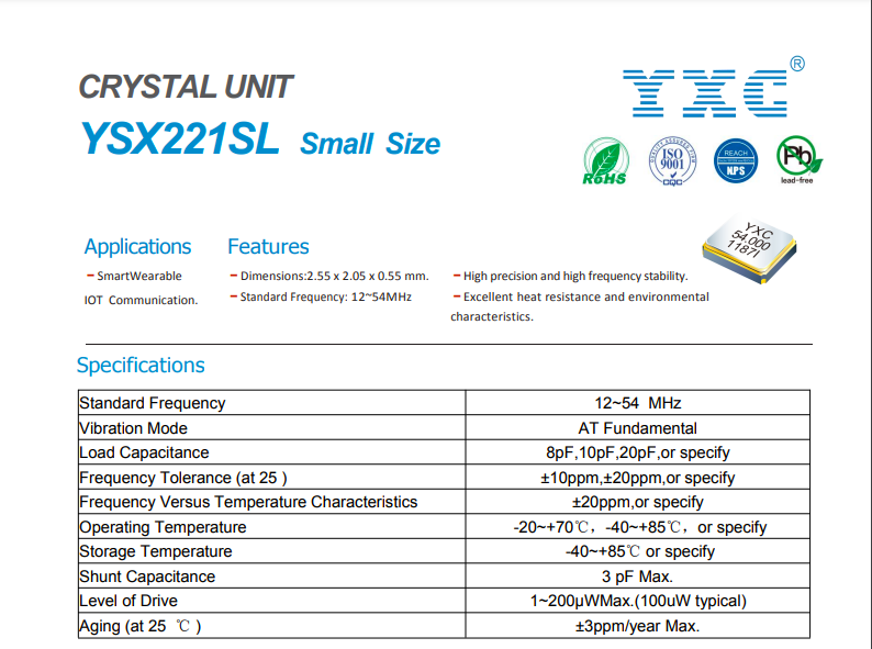 常用頻點(diǎn):32.768KHZ、8MHZ、10MHZ、16MHZ、26MHZ、27.12MHZ。