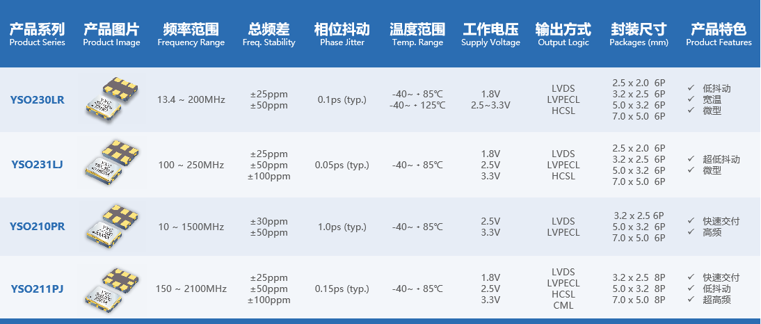 國產(chǎn)晶振原廠揚(yáng)興科技提供全面的差分晶振產(chǎn)品系列,為視頻處理器提供低抖動、低相噪、高精度的時鐘解決方案。針對視頻處理器應(yīng)用,主推產(chǎn)品系列及特色優(yōu)勢如下: