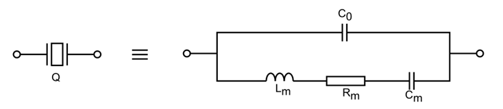 石英晶片經(jīng)過被電極,上架、封裝即成為壓電諧振器。當外加電場的交變頻率與石英晶片的固有頻率相接近,且外加電壓的角頻率ω等于石英機械振動的固有諧振角頻率ω時(取決于石英晶體的幾何尺寸和切型),晶片產(chǎn)生機械諧振,彈性振動通過壓電效應與回路相耦合,其效果等于由Lm,Cm,Rm的串聯(lián)臂和C0并聯(lián)組成的諧振回路。此時機械振動的幅度最大,相應地晶體表面所產(chǎn)生的電荷量最大,外電路中電流最大。