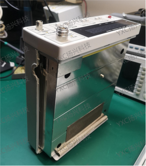 接著把外殼卸下,并把支架取下,此時出現(xiàn)一個金屬屏蔽罩(測試儀器對干擾源還是有一定的要求),整個電路板部分包裹在里面。此時拆下1顆屏蔽罩蓋板螺絲,取下屏蔽罩,漏出電路板;
