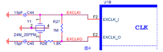 在實際的產品設計時,晶振部分的電路會有下面2種電路,圖1電路中,沒有1M的反饋電阻,圖2電路中,晶振會并聯(lián)一個1M的電阻,