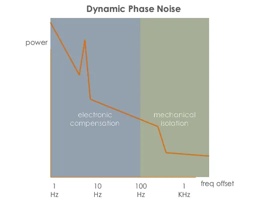 使用的典型補(bǔ)償方案可以覆蓋大約500Hz的振動,而隔離結(jié)構(gòu)以大約120Hz開始衰減。