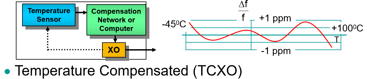 溫度傳感器實(shí)時(shí)監(jiān)測(cè)環(huán)境溫度,補(bǔ)償網(wǎng)絡(luò)或計(jì)算器根據(jù)溫度變化計(jì)算出所需的頻率補(bǔ)償量,系統(tǒng)對(duì)水晶振蕩器的輸出頻率進(jìn)行動(dòng)態(tài)調(diào)整。