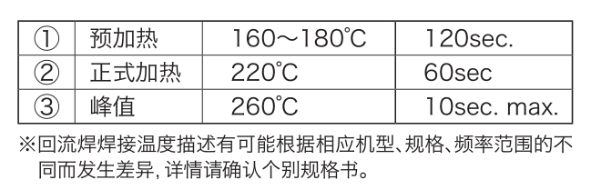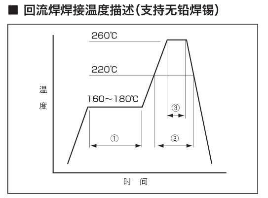 有關(guān)SMD產(chǎn)品的回流焊焊接溫度描述,請參照下圖。