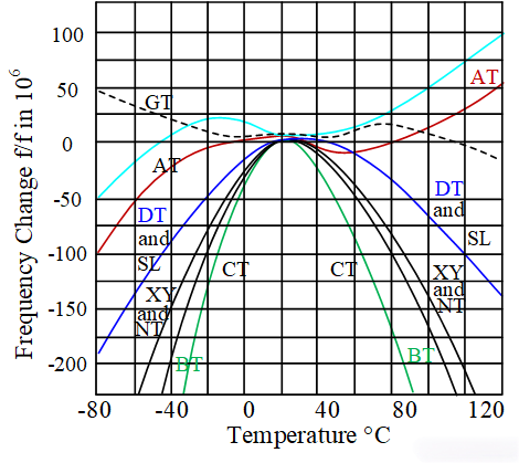 AT切:適用于寬溫度范圍內(nèi)的高頻率應(yīng)用,成本較低,易于批量生產(chǎn)。