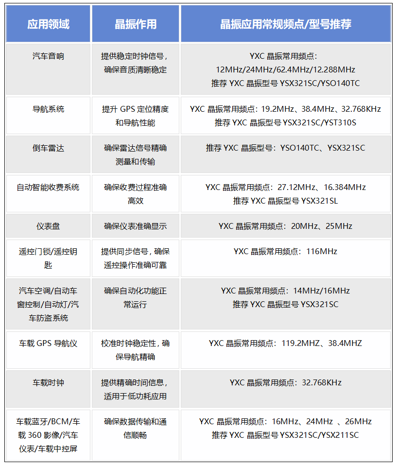 在車載領(lǐng)域,揚(yáng)興科技(YXC)的車規(guī)級產(chǎn)品具有高可靠性、高精度以及良好的耐環(huán)境特性。此外,揚(yáng)興科技還不斷加大對石英晶振的研發(fā)投入,成功研發(fā)并量產(chǎn)了國內(nèi)領(lǐng)先的可編程頻率芯片,并斬獲了多項專利和榮譽(yù),進(jìn)一步鞏固了其在車載領(lǐng)域、車規(guī)級產(chǎn)品方面的領(lǐng)先地位。