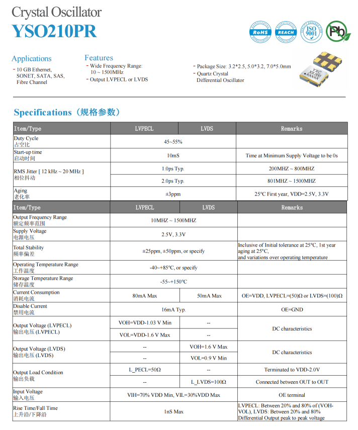 · 高精度、高穩(wěn)定性:提供FS±25ppm的超高精度差分晶振